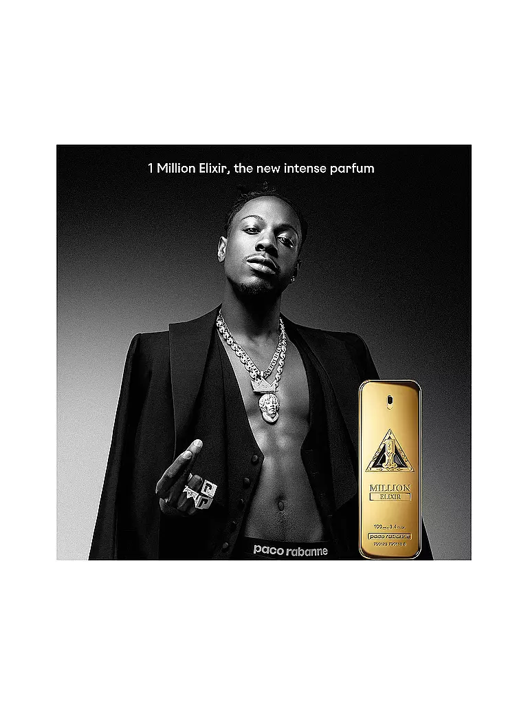 1 Million Elixir, der neue Herrenduft von Raco Rabanne, ist ein orientalisch holzig fruchtiges Parfum Intense. Lebendige warme Hölzer verschmelzen mit raffinierter rosiger Davana zu einem intensiven und kontrastreichen Duft, der von sinnlicher Vanille veredelt wird.