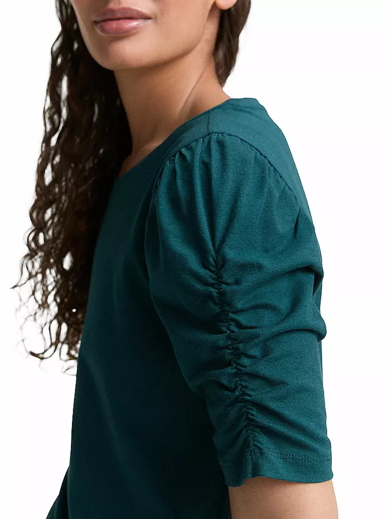 Bei Kastner & Öhler finden Damen T-Shirts in vielen angesagten Farben und Mustern. Die Markenprodukte von bekannten Labeln wie Tom Tailor, Rich & Royal oder ARMEDANGELS bestechen mit hoher Verarbeitungsqualität, ausgesuchten Stoffen und ansprechenden Designs. Wer es schlicht und einfach mag, ist bei einfärbigen Damenshirts in Weiß oder Schwarz genau richtig. Farbenfrohe Oberteile in leuchtenden Nuancen setzen eindrucksvolle Akzente. Zeitlose Punkt- und Streifenmuster oder eine melierte Optik sorgen ebenfalls für Abwechslung. Echte Blickfänger stellen Kurzarmshirts mit Schriftzügen und aufgedruckten Motiven dar. Aufregende Animal-Prints sowie Allover-Drucke mit Blumen, Blättern oder geometrischen Formen sind ebenfalls unwiderstehliche Eyecatcher. Ein weiteres Gestaltungsmittel ist die jeweilige Ausschnittform der Damen-Shirts. Im reichhaltigen Sortiment können Sie aus Modellen mit sportlichem Rundhals- oder stilvollem V-Ausschnitt wählen. Wenn Sie die Blicke auf Schulterpartie und Dekolleté lenken möchten, sind Ausführungen mit breitem Carmen- oder U-Boot-Ausschnitt ideal. Entdecken Sie die vielen modischen T-Shirts für Damen im Online Shop von Kastner & Öhler!