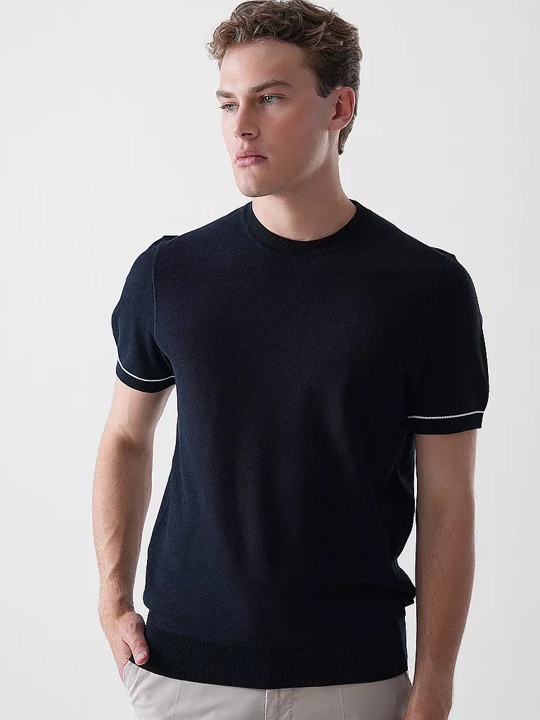 T-Shirts sind vielfältig einsetzbar. Dank der verschiedenen Designs passen die kurzärmligen Oberteile sowohl zur legeren Freizeitkleidung als auch zu förmlichen Ereignissen. T-Shirts gibt es mit V- oder Rundhalsausschnitt. Je nach Stil und Anlass entscheiden Sie sich zwischen anliegenden oder weiten Modellen. Bei Ihnen steht ein formelles Treffen an, das jedoch nicht zu streng sein soll? Dann passt ein weißes T-Shirt mit einem Jackett optimal. Im Sommer locken die Sonnenstrahlen nach draußen und Sie planen einen Ausflug zum See? Dann nehmen Sie doch ein farbiges Oberteil mit Aufdruck. Ein zeitloses Basic-T-Shirt ist der perfekte Partner für Unternehmungen und Firmenfeiern. T-Shirts sind jedoch nicht nur für die wärmeren Temperaturen geeignet. Im Winter machen Sie mit T-Shirt und Cardigan darüber eine gute Figur. Unter einem Strickpullover mit V-Ausschnitt wirkt ein Poloshirt schick, wenn Sie den Kragen herausschauen lassen. Wählen Sie einfach aus den verschiedenen Schnitten, Stilen und Farben Ihre Favoriten aus.