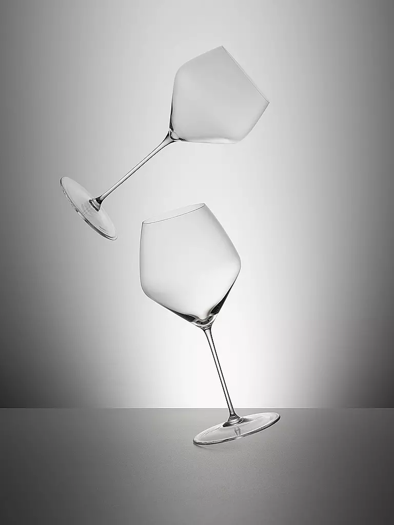 Die voluminöse Form haben fast alle Rotweingläser miteinander gemeinsam – doch jenseits davon setzt die stilistische Vielfalt ein. Ein fruchtiger Chianti benötigt ein weniger ausladendes Glas als ein schwerer Bordeaux. Für Portwein-Freunde empfehlen sich Weingläser in Kelchform, und Roséweine müssen nicht atmen und geben daher auch in einem schlankeren Glas ihr Bestes.