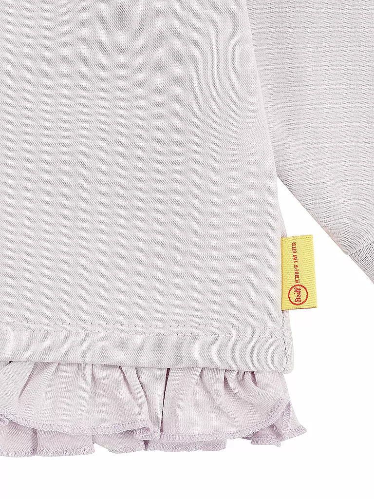Mit einem Rüschenabschluss erobert das gemütlich wärmende Sweatshirt alle Herzen. Flexibler Sweat und praktische Schulterknöpfung helfen beim Anziehen. Die lockere Passform schenkt aktiven Mädchen Bewegungsfreiheit zum Spielen und Herumtollen. Einfach schnell obendrüber gezogen oder als Basic für romantische Alltags-Looks: Zartes Hellblau ist zauberhaft kombinierbar. Auch festliche Kombinationen sind mit dem Sweatshirt im Handumdrehen zusammengestellt. Für alle Fälle wird Ihre Kleine von einem großen, flauschigen Steiff Teddybärmotiv auf der Shirt-Mitte zu jedem schönen Anlass begleitet. Einfach perfekt!
